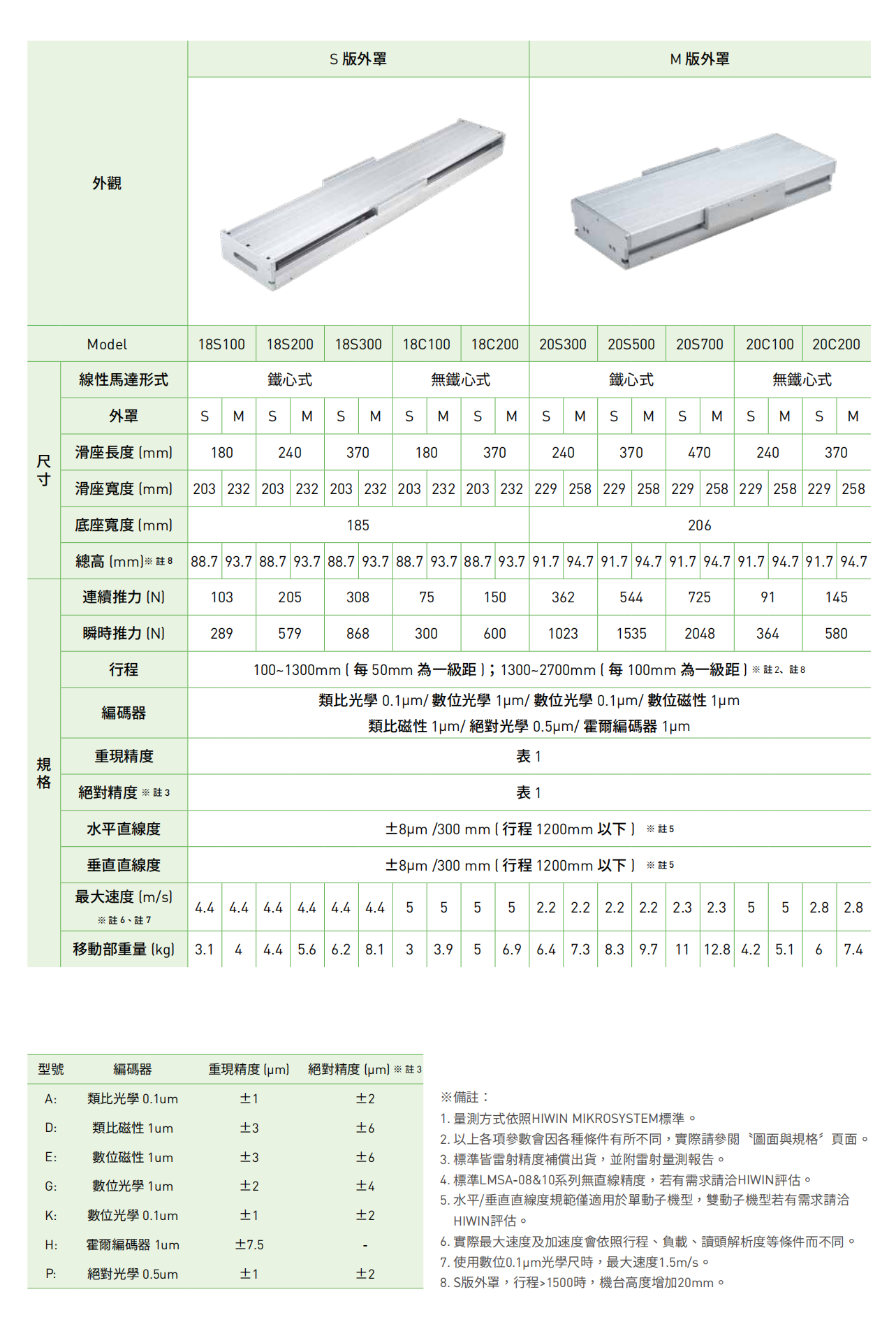 马达形式:无铁芯式                K:数位光学0.1μm